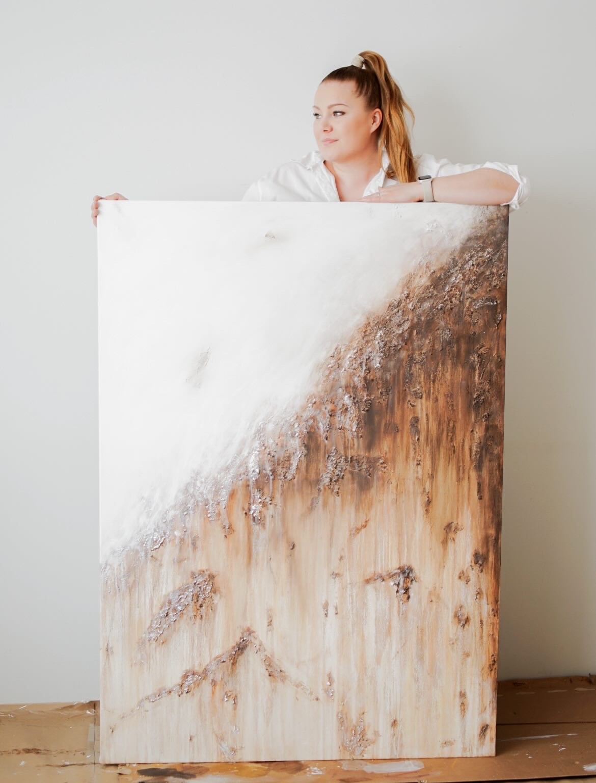 Tekniikka/materiaali: Akryylimaali, tekstuurimassa ja kivi sekä hiekka.