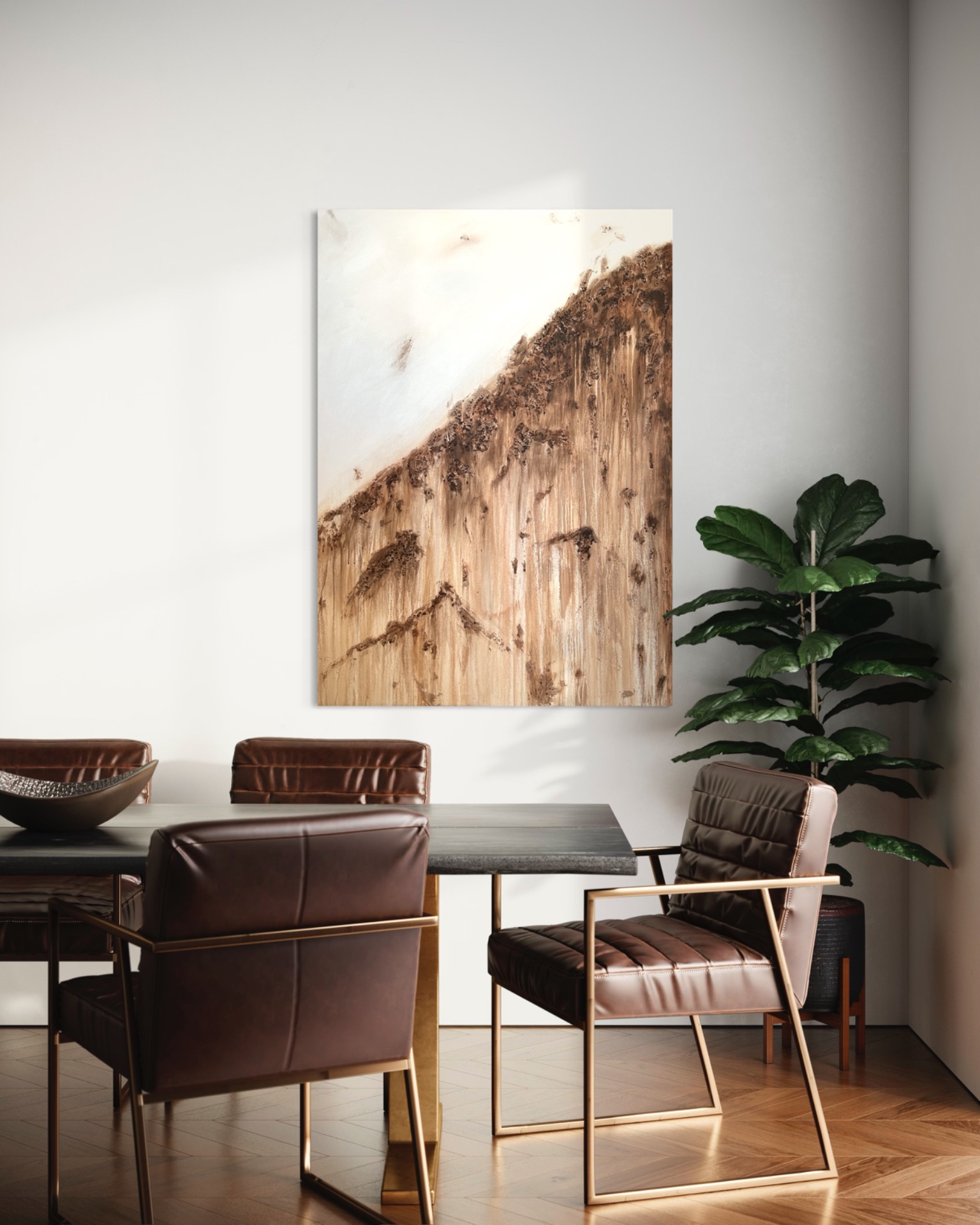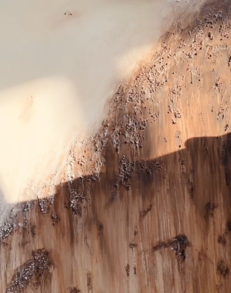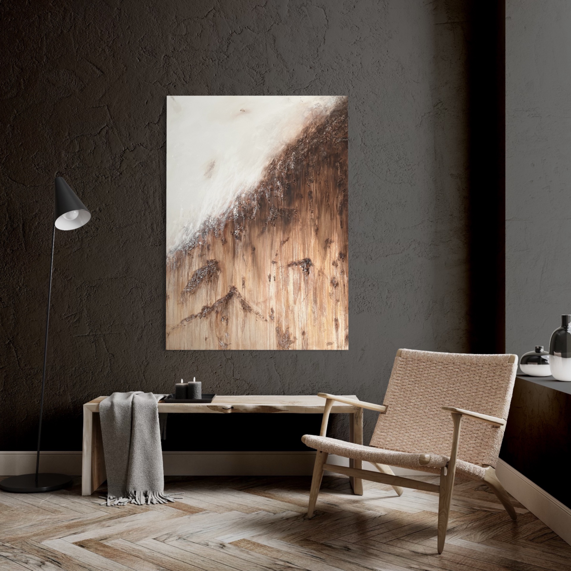 Tämä jylhä abstrakti taulu vangitsee katseen tilassa kuin tilassa. Sen pinnassa yhdistyy kauniit valuvat värit sekä rosoinen pinta. Kotimainen uniikki teos. Teos on ripustusvalmis.
