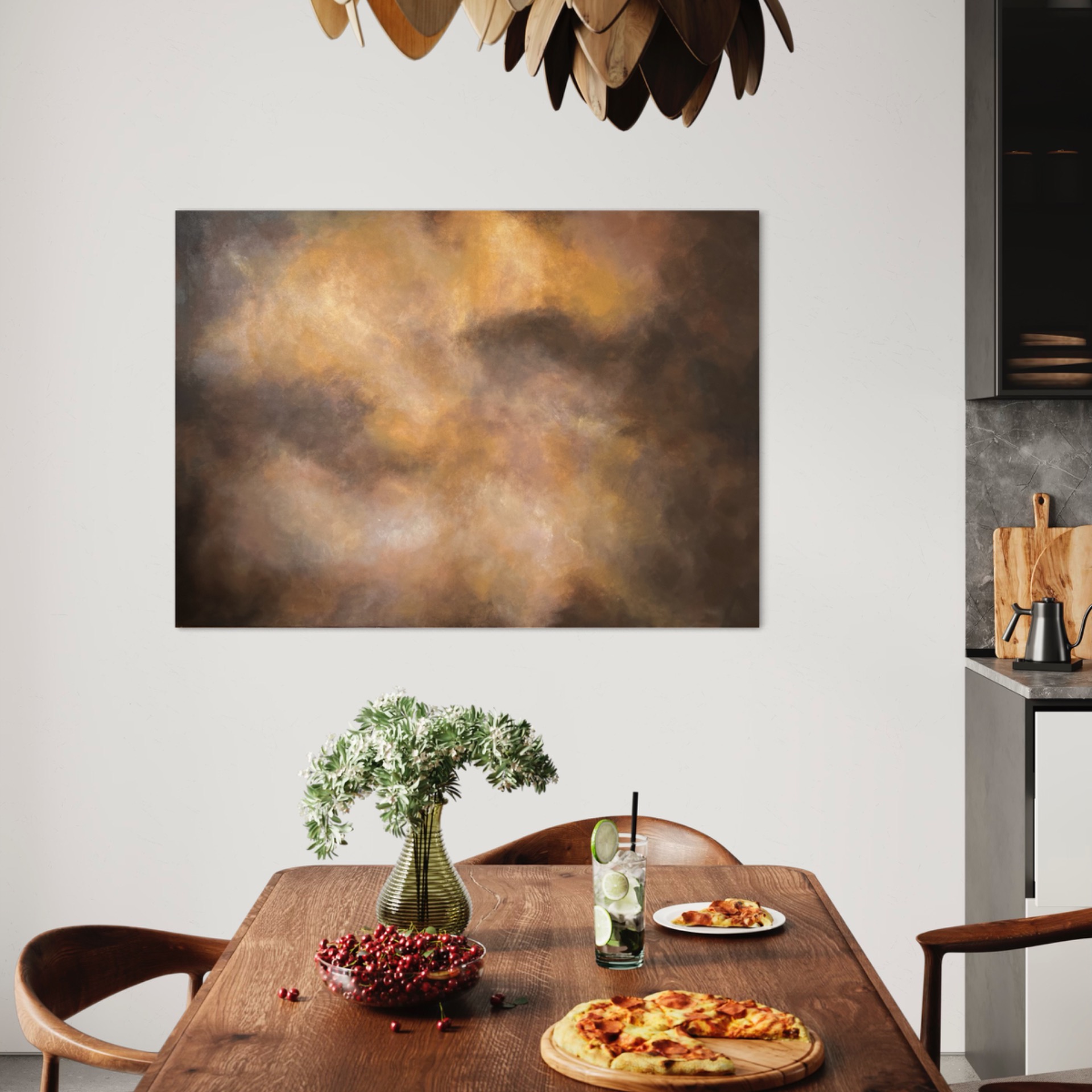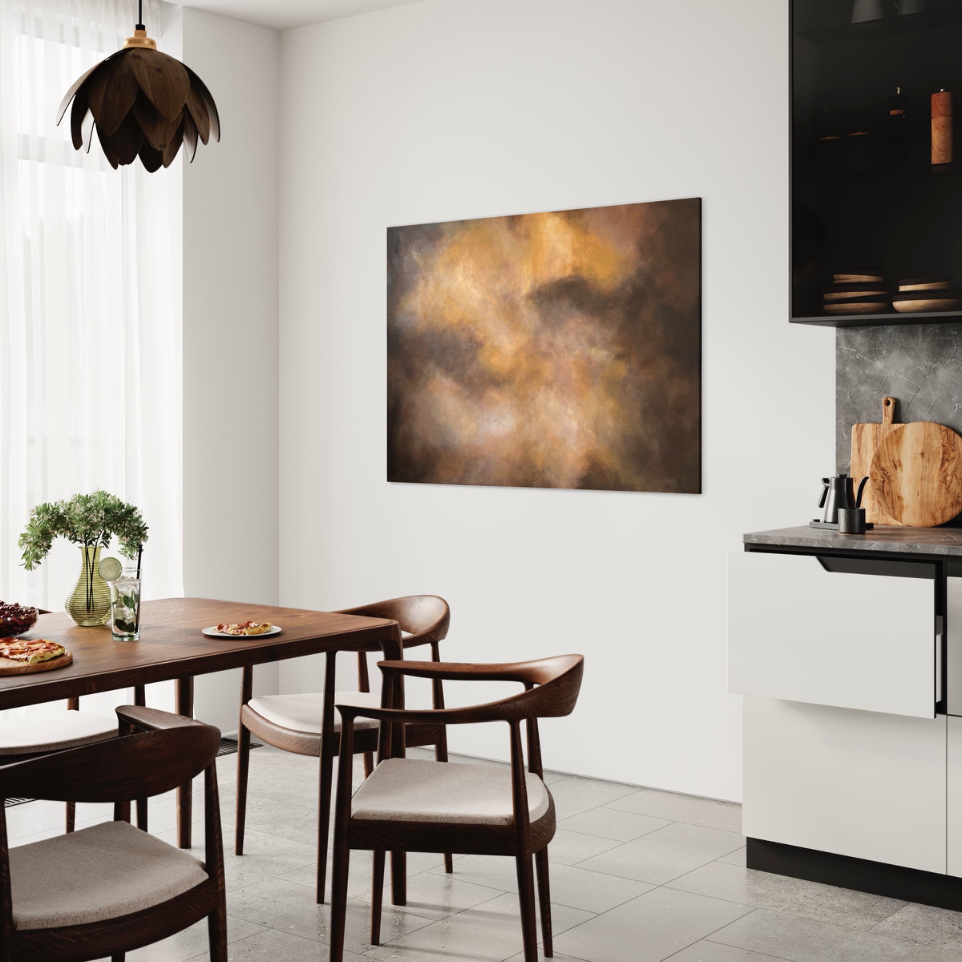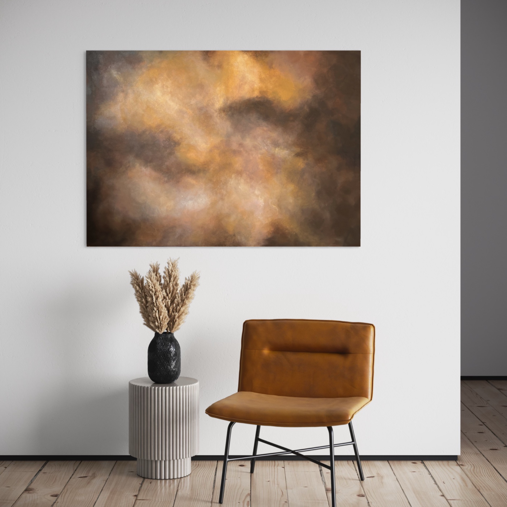 Suurikokoinen kotimainen ruskeansävyinen abstrakti taulu, jossa leikittelee kauniit maanläheiset sävyt. Teoksen voi ripustaa joko vaakaan tai pystyyn. Maalaus sopii hienosti niin moderniin sisustukseen kuin perinteiseen tunnelmaan. Teos on ripustusvalmis.